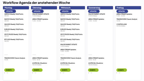 Handeln Sie mit den Profis von Investor Guard und profitieren Sie von einer optimierten Tagesroutine inklusive präziser Analysen (TMMA) sowie dem KI-Trading Assistenten TREND-GUARD (Vollzugriff).