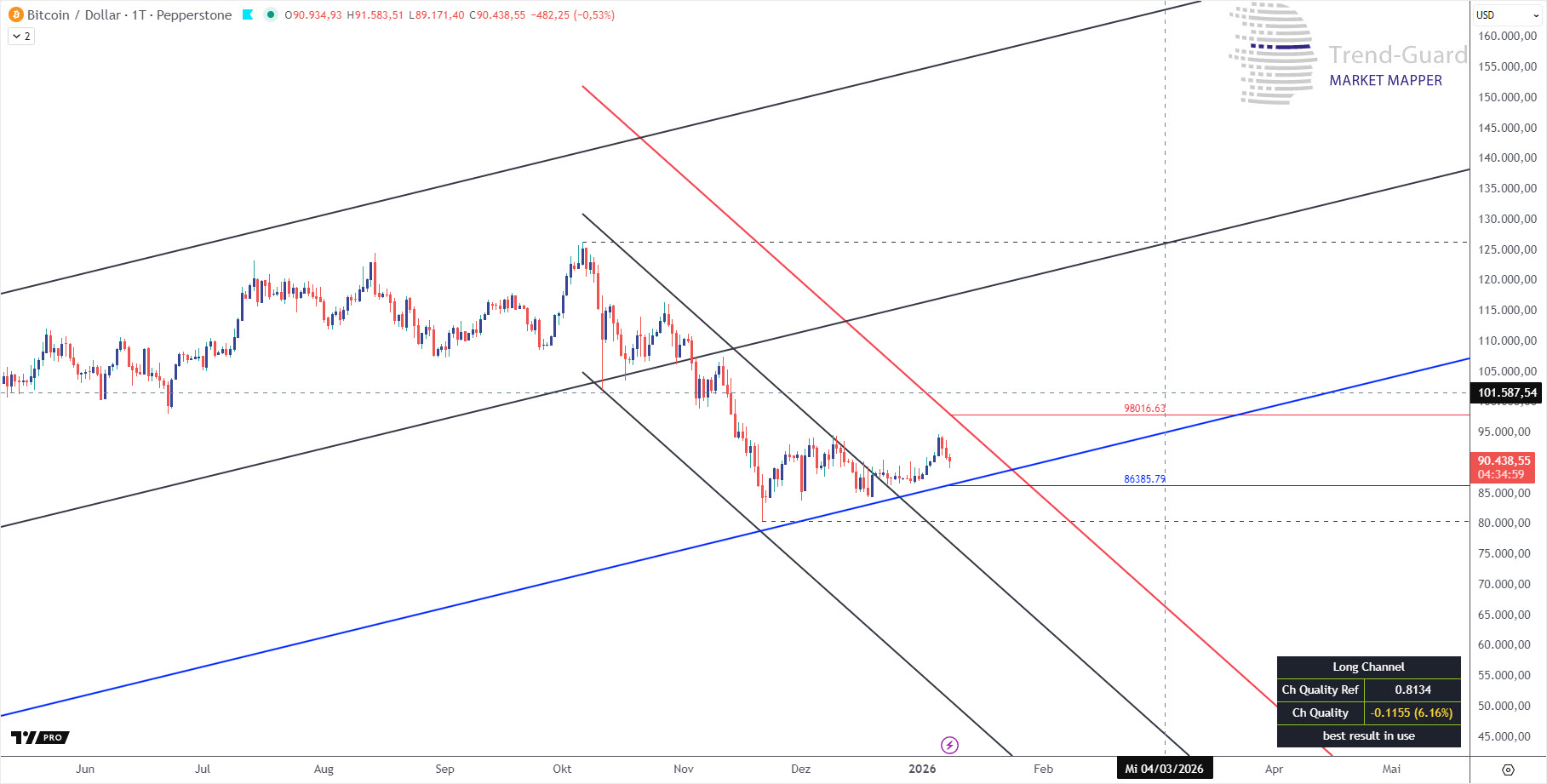 Market Mapping umschreibt die systematische Erfassung der aktuellen Hauptbewegungsrichtung des Marktes. Einfach gesagt wird der Markt von A bis Z kartografiert und mit belastbaren Linien und Kanälen versehen.